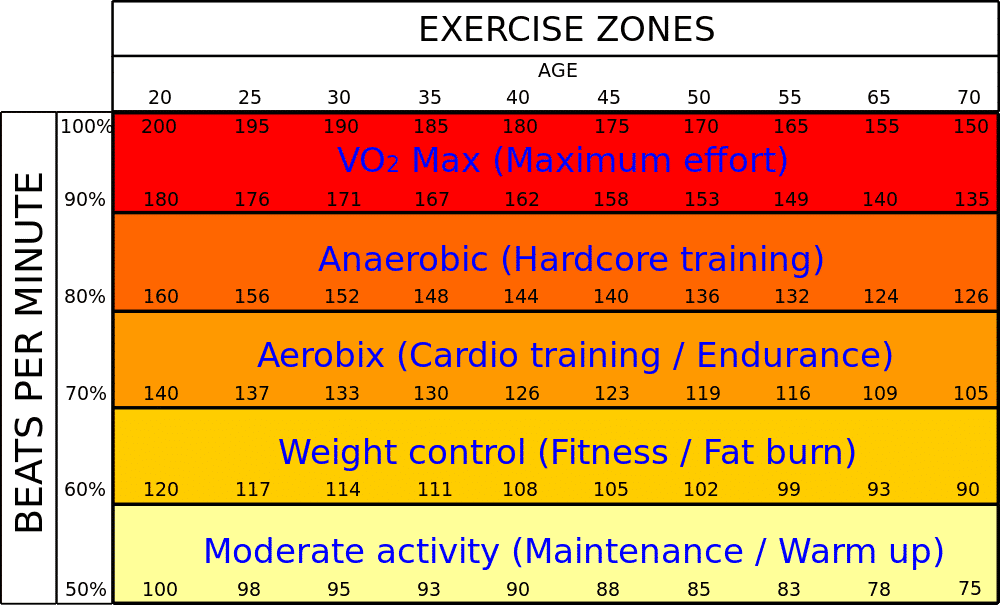 | День | Заняття | Тривалість | Цільовий діапазон ЧСС | Примітки |