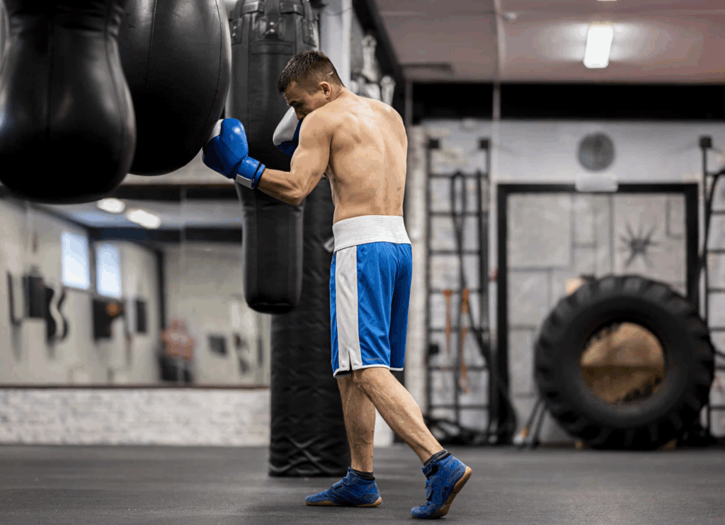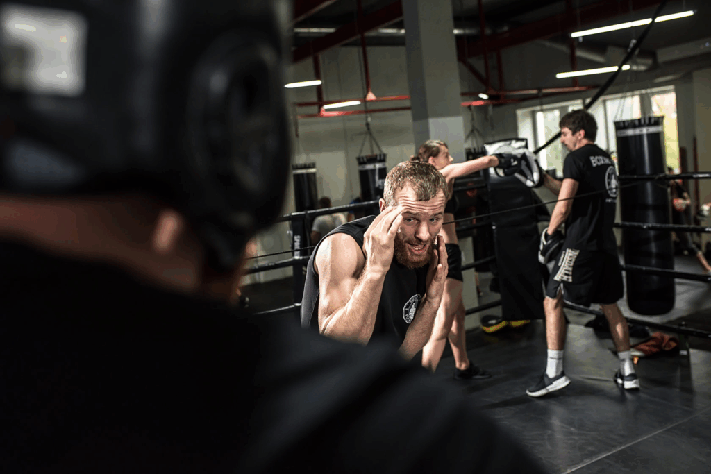 Лапи: 6×3 хв з логікою по раундах — 1) джеб + кроки; 2) джеб-крос у темп із фінтом; 3) входи/виходи з клінчу; 4) серії 4–6 ударів; 5) робота корпусом + контратака; 6) фінішні 20 с «все». Тут доречні інтервальні вставки, бо HIIT для боксу імітує енергетичний профіль бою, навчаючи тримати темп, а наприкінці — «вистрілювати».