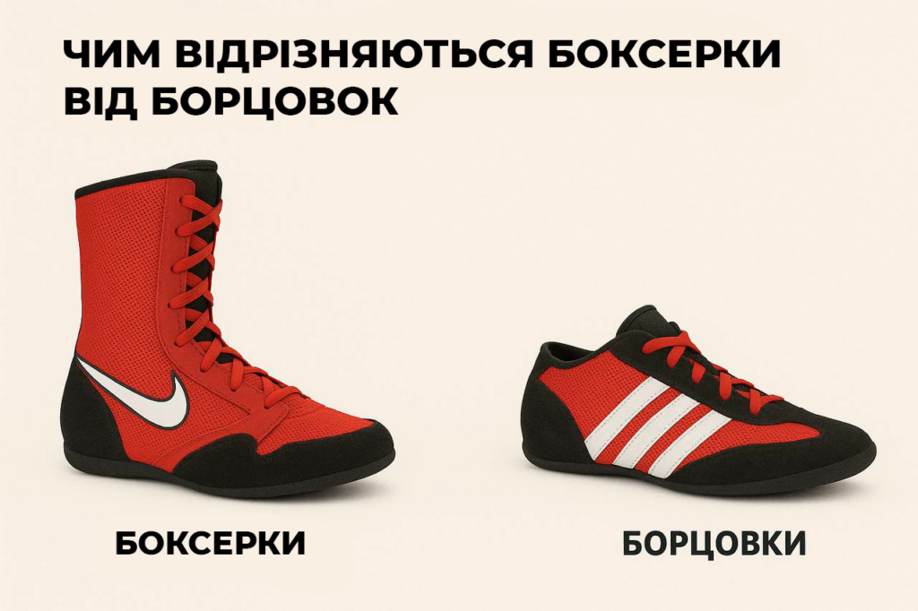 Конструкція взуття для боксу відрізняється насамперед висотою берців. Саме цей параметр визначає рівень фіксації та свободу рухів.